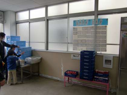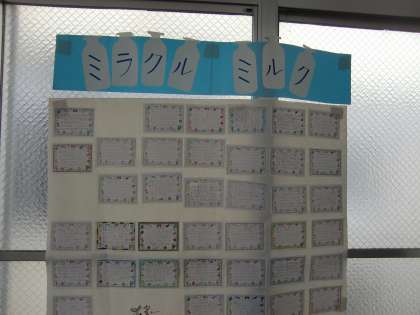 5年生が先週の給食感謝週間に取り組んだ牛乳業者の方への感謝の気持ちを込めた手紙が今,サービスホールに掲示してあります。