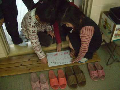 ある日,子どもたちが,「トイレのスリッパ,どうしたらそろうかなぁ。」とつぶやいていました。私も「ほんまやなぁ。なんかいい方法ないかなぁ。」と一緒に話していました。