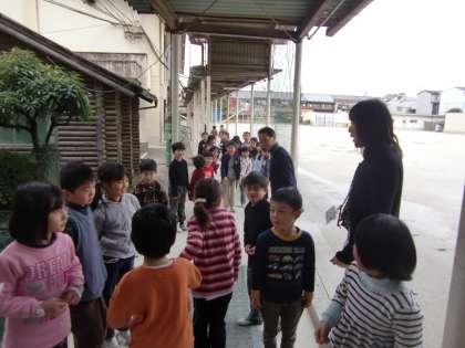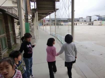 4月に入学してくる年長さんを1年生の教室まで手を引いてエスコートします。1年間のことを思うとずいぶん成長しました。