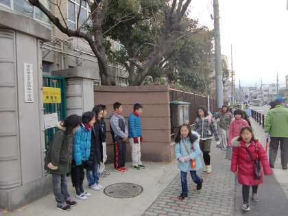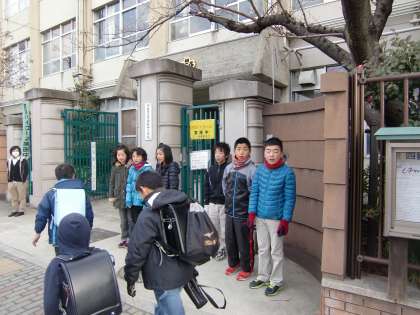 毎朝,校門の前で「ポケットに手を入れないようにしましょう」と呼びかけてくれている高学年の子どもたちです。こうした地道な取組が効果を表し始めたのか,最近,ポケットに手を入れたまま校門前を通り過ぎる子の数が格段に減りました。