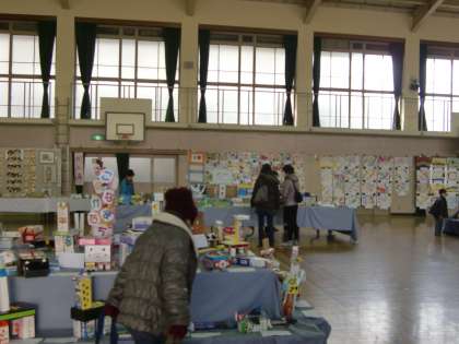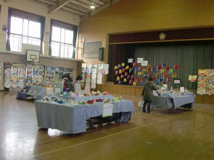 図工展会場でわが子の作品を見つけて,ニコッとされる方もおられました。