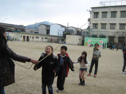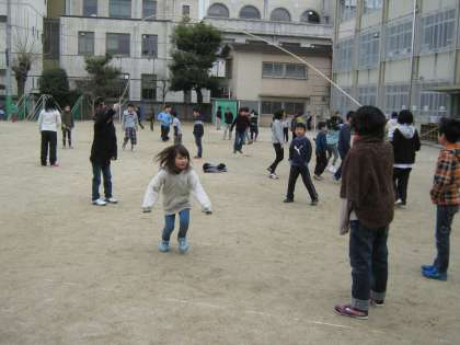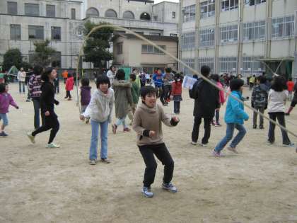縦割りで,1年生から6年生までが大縄跳びを楽しみました。前回,「ライオングループ」が実施して,今日が「キリングループ」でした。低学年と高学年の児童が一緒にする活動をどの子もうれしそうです。