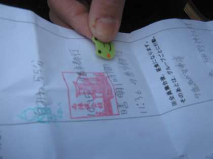 ポイントでは子どもたちの集合写真を撮っていただいたり,子どもたちの行程表にサインをしていただいたりしたのですが,シールやスタンプなど,工夫を凝らしてくださり,子どもたちはとても喜んでいました。