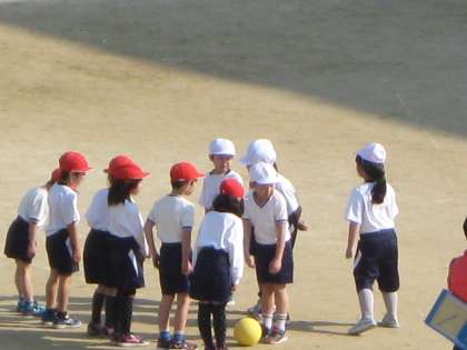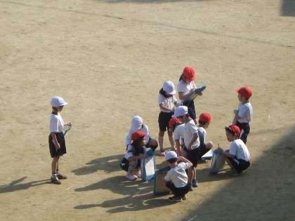 「ボールけりゲーム」の後は,きちんと並んで整列です。そして,子どもたちは振り返り用紙をはさんでいるバインダーの所に行き,今日の学習の反省をします。そして,次の学習の意欲を高めていきます。