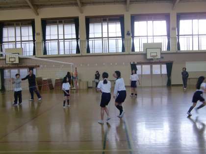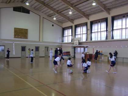 今日は部活バレーの最終日です。最終日恒例の四錦教職員即席チームとのお別れ試合を行いました。今年度は部員が少なく思ったように練習ができなかったかもしれません。今年一年を締めくくる今日の試合を大いに楽しむ子どもたちでした。