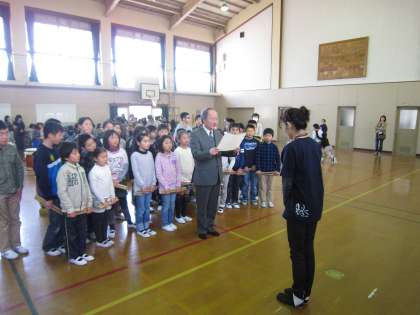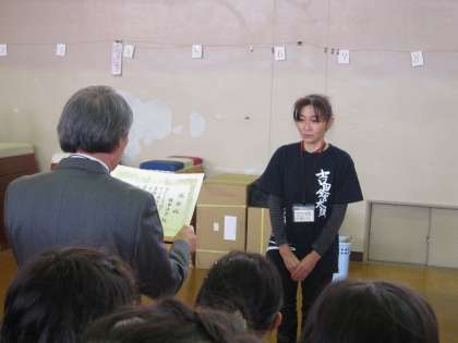 和太鼓の発表会の後に、指導してくださった地域の方に、学校から感謝状を差しあげました。これまで、地域のお祭りやイベントへ参加するなど、目標を決めて、たくさんの子どもたちを指導してくださいました。本当に感謝します。ありがとうございます。来年度も、どうぞよろしくお願いします。