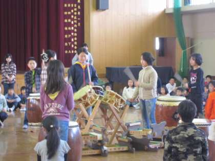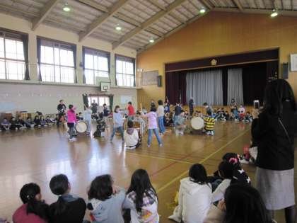 部活動「和太鼓」の活動の仕上げとして,ミニ発表会が開かれました。中間休みに体育館で行いました。保護者の皆さんも応援に来てくれました。見に来た子どもたちも迫力ある演奏に感激していました。