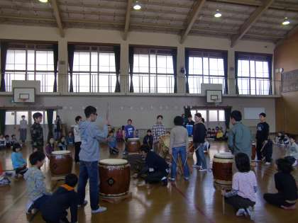 中間休みの和太鼓,いや〜迫力満点。