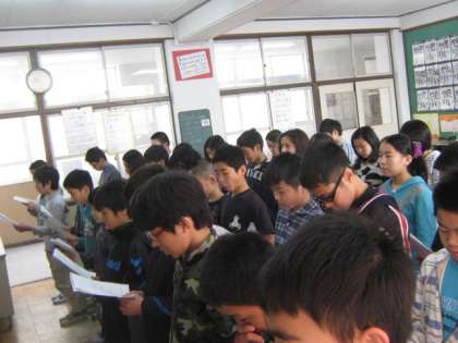 卒業式の言葉の練習二日目です。45分で子どもたちの気持ちがどんどん一つになり,ふくらんでいきました。