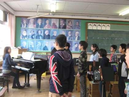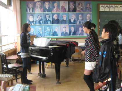 今日は音楽の藤原先生と音楽室で合同練習をする最終日でした。