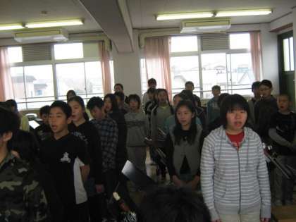 6年生を送る会や卒業式の歌の練習を,音楽室で行っています。