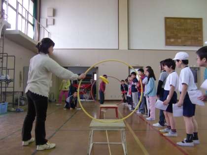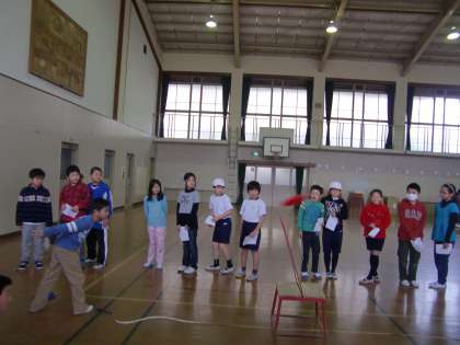 中間休みの体育館。今日は中学年の『四錦オリンピック』です。