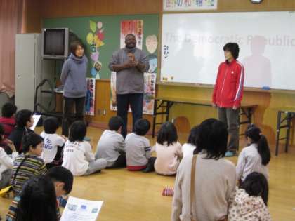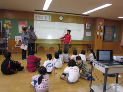 午後は「世界の和輪話」です。今回はコンゴ共和国です。お話をしてくださるのは、バサボセさんでコンゴでゴリラとチンパンジーの研究をされている方です。コンゴのゴリラの自然環境を守るお仕事をされています。研究で京大に来られたそうです。
