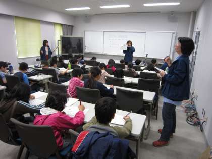 最後はみんなで答え合わせ。答えが合っていると、ちょっと自慢げな顔の子どもたちもいました。お土産に三葉虫の消しゴムをもらって、うれしそうでした。