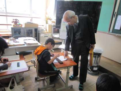 今回,京都珠算振興会から中村先生と水間先生のお二人にお越しいただいて,ご指導いただきました。