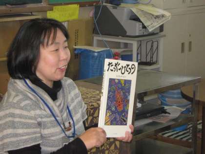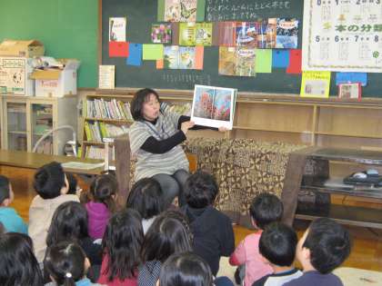 今日の絵本は「たったひとつの」という,オオサンショウウオが主人公のお話でした。オオサンショウウオの心情が語られる話で,少し難しいかなと感じたのですが,聞き入っていた様子でした。