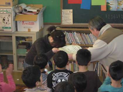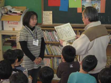 ボランティアグループ「おはなしわくわく」の皆さんに校長先生から,感謝状を渡しました。会場にいた子どもたちも,一緒に感謝の気持ちを伝えました。
