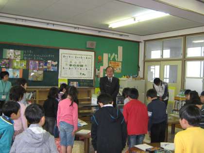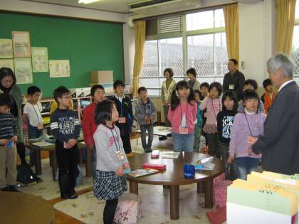低学年の児童は「わくわくルーム」で「放課後まなび教室」を行っていました。一年生は後期から頑張りました。今日は閉講式。まず,校長先生からお話があり,次に担当のボランティアの皆さんからお話がありました。