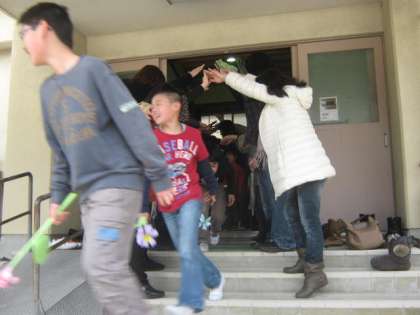 最後は全校児童による花道を通って退場しました。子どもたちは,恥ずかしそうでしたが,とっても嬉しそうな顔をして出てきました。