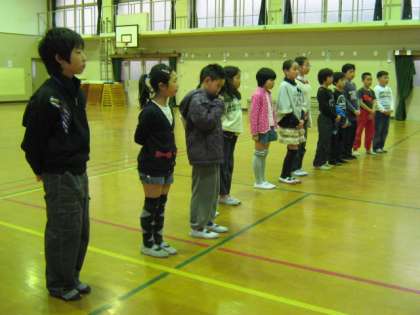 写真2枚目と3枚目は,最後の挨拶と片づけをする6年生です。