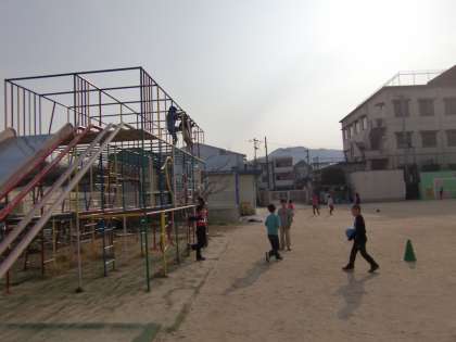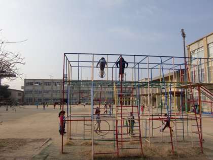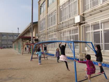これだけ気温が上がってくると,もう鉄製の遊具も冷たくありません。