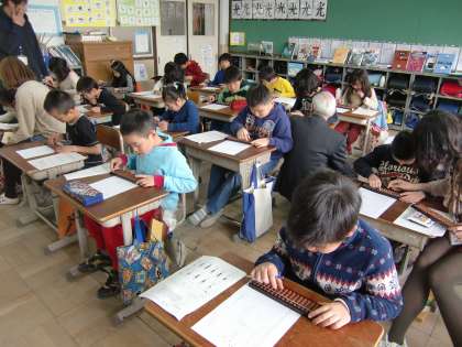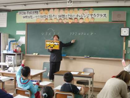 13日,3年生のそろばん学習の最終日でした。かけざんの問題に挑戦しています。そろばんの便利さを感じている子もたくさんいましたが,九九があやふやだと大変です。