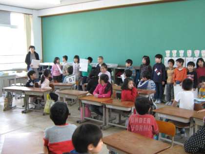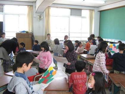 1年生から2年生へ花束の贈呈です。2年生の笑顔から,1年生が心をこめて作ってくれたことがよくわかります。2年生も3年生になる心構えができてきたようです。