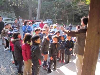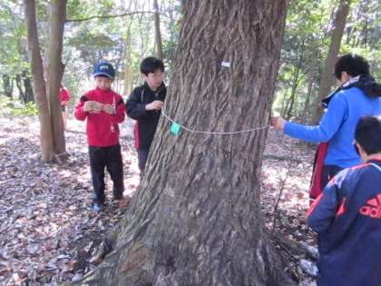 サタデースクールの取組で「吉田山の調査隊」、吉田の森の生き物を楽しく調査しました。吉田山には、7種類のクワガタと2種類のカブトムシがいるそうで、そのすみかになる木をさがしに5つのグループに分かれてゲーム形式で調査しました。