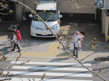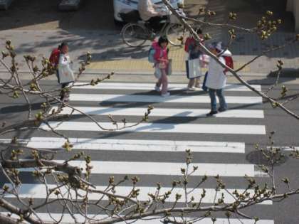3年1組の教室の窓を開けると,桜の枝が,つぼみをいっぱいつけてのびているのがすぐそこに見えます。