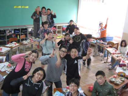 最後の給食時間,「いつもの机の並びでいい?」と子どもたちに聞くと,「円!!!」勢いよく答えが返ってきて,みんなで机を円に並べていました。