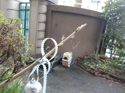 新芽が誇らしげな細い枝にきれいなリボンを結んでくれました。