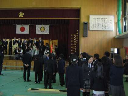 卒業式の後に,本校では,保護者と一緒に卒業写真を撮ります。思い出のたくさん詰まったこの体育館での最後のイベントになります。