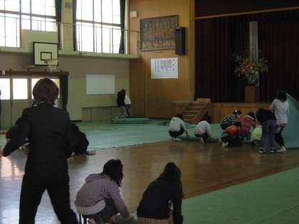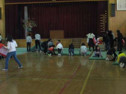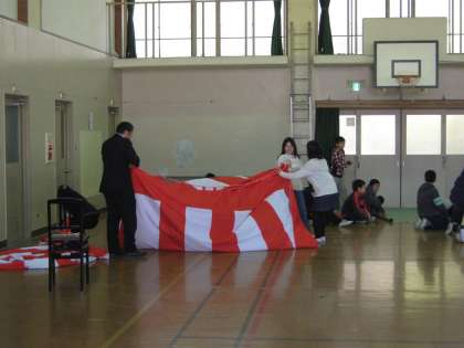 卒業式が終わってから,5年生は後片付けをてきぱきとやってくれました。床に敷いたシートが重いけどよく頑張ってくれました。最上級生としての早速の仕事始めです。