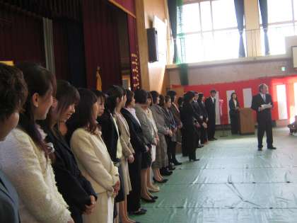 新しい学年になって,教職員の紹介がありました。そしていよいよ担任の発表です。担任の先生の名前が発表されるたびに歓声が上がっていました。