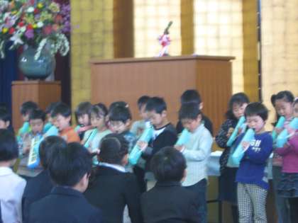 入学式での2年生の「お迎えの言葉」。