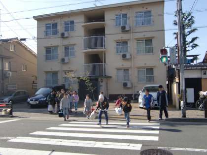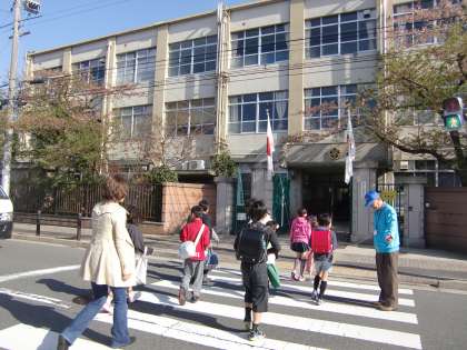『声かけ登校』で正門前にPTAの皆さんが集まってくださいました。