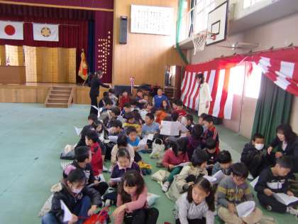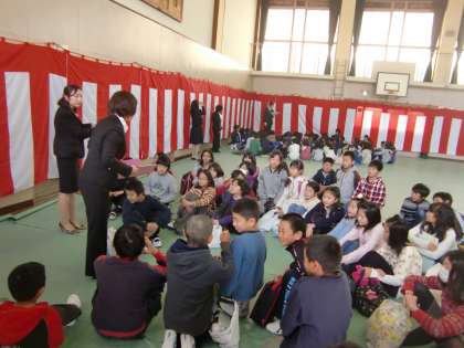 始業式で,「担任発表」を聞いた後,子どもたちは担任のもとに集まり話を聞きます。