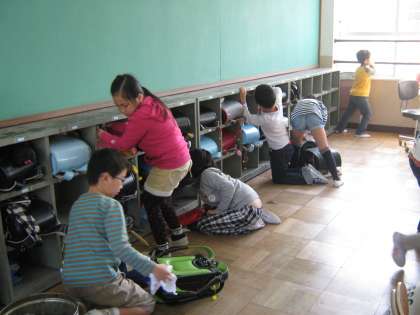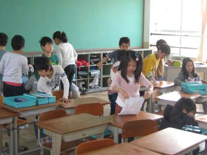 2時間目は,大掃除をがんばりました。3年生は,教室が新しいことはもちろん,新しい友達と力を合わせて行う最初の行事です。それぞれが隅々の汚れまでやるべきことを見つけてがんばりました。学校に持ってきてもらった雑巾をさっそく使わせてもらいました。ありがとうございました。