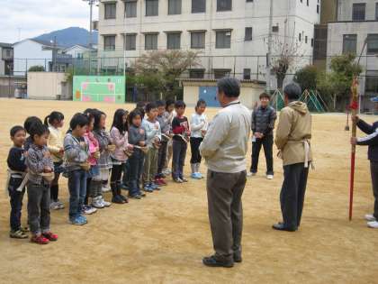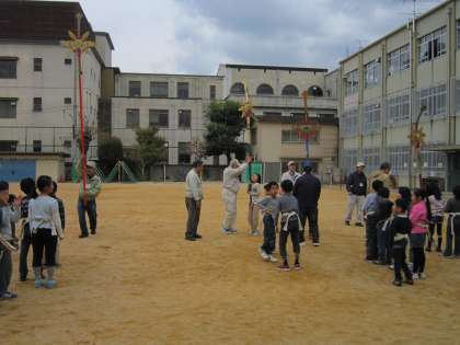 子どもたちは、「やばい ほんまに おもたいで!」と言っていました。体験して剣鉾の楽しさを少し味わえたのではないでしょうか?今日の体験をもとにして、たくさんの子どもたちが部活動に入部してくれることを願っています。