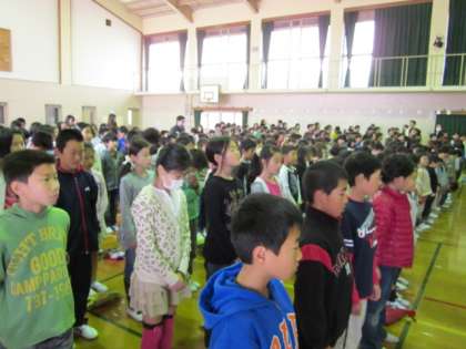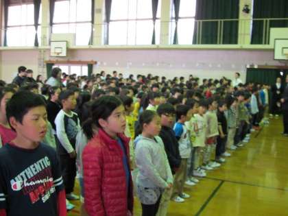 高学年がきれいな声で歌うので、全体がやさしい声に聞こえました。
