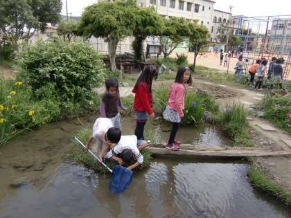 ちょっと肌寒さは感じますが,晴れの日のビオトープは賑わいます。昼休みの様子です。それぞれに楽しみ方は違いますが,みんな,ビオトープを満喫しています。