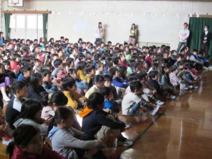 今日は、全校道徳ではなかったので、感想を述べあうことはしませんでしたが、このあと教室でまたは宿題で、「村人」にむけての感想を書くことになっています。(2年生以上)どんなふうに子どもたちは、感じたでしょうか。どんな思いをもったでしょうか。
