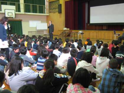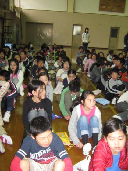体育館で座る場所が,ひとつ外側になりました。「こんな場所!?」と子どもたちは驚いていました。