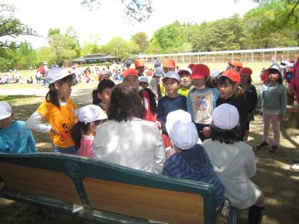 ゴールでは,バラ園にあるバラの名前を覚えて,先生に伝えなくてはいけません。「ウララ」や「ピース」というバラの名前がありました。もっとむずかしいバラの名前を先生に伝えているグループもありました。まだ今日はバラの花を見るには早すぎて,きれいに咲いている様子が見られなかったのが残念でした。