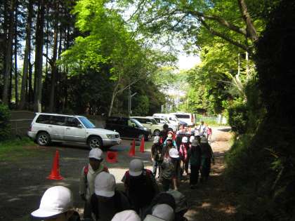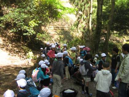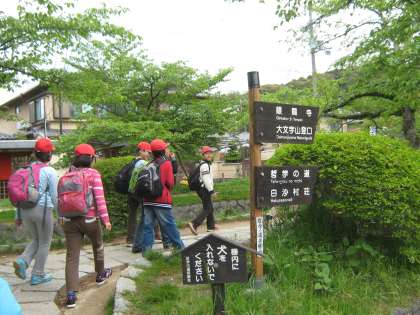「大文字山」に行く途中では銀閣寺のそばを通りました。銀閣寺の裏手を過ぎた所で休憩をして,いよいよ山道に入りました。