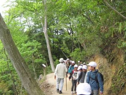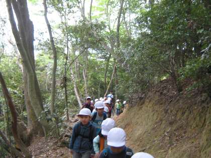 いよいよ山道です。山から下りてくる方に何人も出会うことができました。残念だったのは下りてくる方が「おはよう」と声をかけてくださったのに,挨拶を返す児童が一部であったこと。これからも気をつけていきたいです。