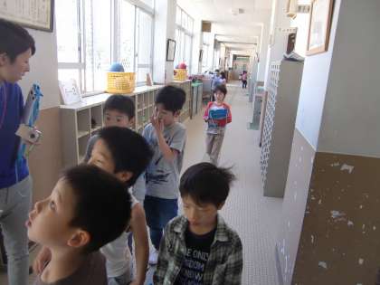 今日はその日のためにいろんな部屋の下見です。2年生が校舎平面図を見ながらいろんな部屋をめぐります。北校舎の最上級生は頑張っています。