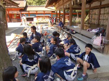 部活剣鉾のデビューは毎年この講社大祭です。今年もよすぎるくらいのいい天気です。