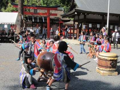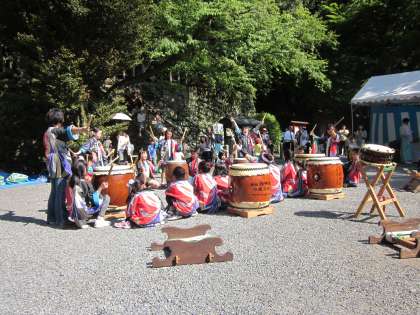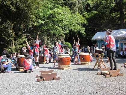 今年度の和太鼓の初舞台が、この吉田氏子講社大祭でした。少し汗ばむぐらいの日ざしの中で、とても力強い演奏をしてくれました。