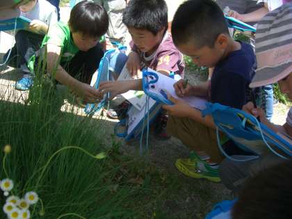 色々な植物や昆虫を見つけました。2年生になり,ただ見つけるだけでなく,活動図鑑を片手に調べたり,疑問に思ったことを訪ねたりできる子が増えてきました。